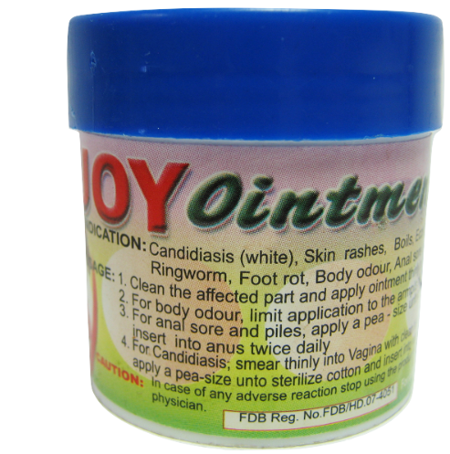 Made in Ghana, Joy ointment is an herbal remedy for hemroids, yeast infections, and odors. Apply a pea sized amount twice daily for best results.